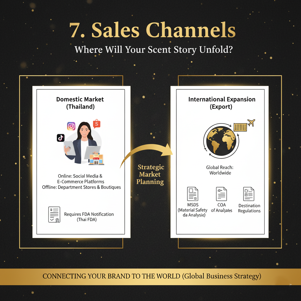 7. ช่องทางการจำหน่าย (Sales Channels)ขายที่ไหนต้องใช้เอกสารต่างกัน:- ขายออนไลน์ (TikTok, Shopee, Facebook)