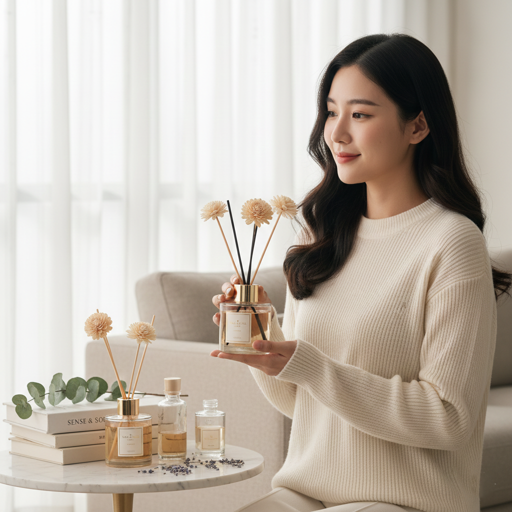 - ก้านไม้และอุปกรณ์ตกแต่ง (Reeds & Accessories): 10-15% ก้านไฟเบอร์หรือก้านหวาย รวมถึงสติกเกอร์ฉลากสินค้า