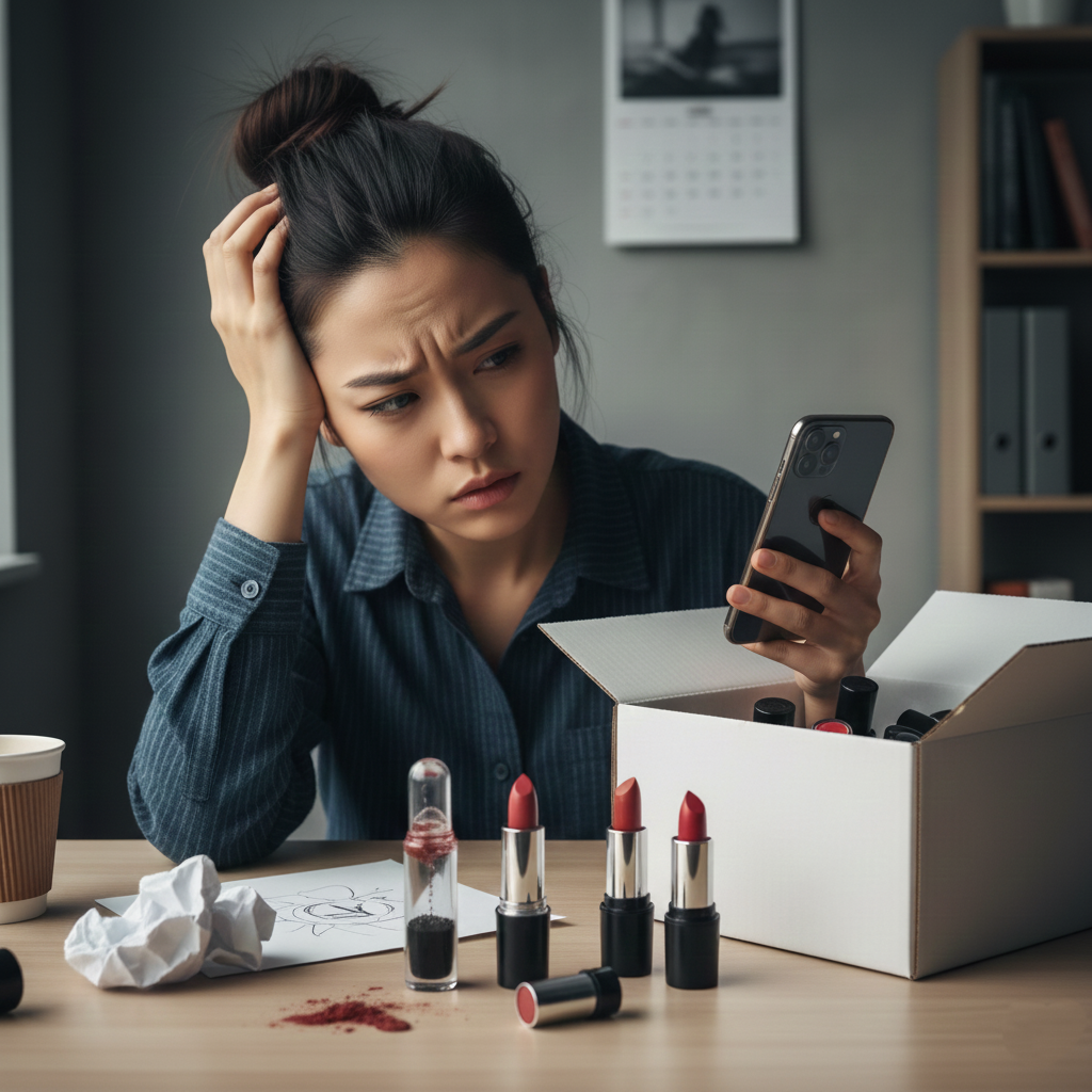 - อาการ: ทาแล้วเนื้อลิปแตกเป็นขุย เน้นร่องปากชัดเจน หรือลูกค้ารู้สึกหนักและตึงริมฝีปาก