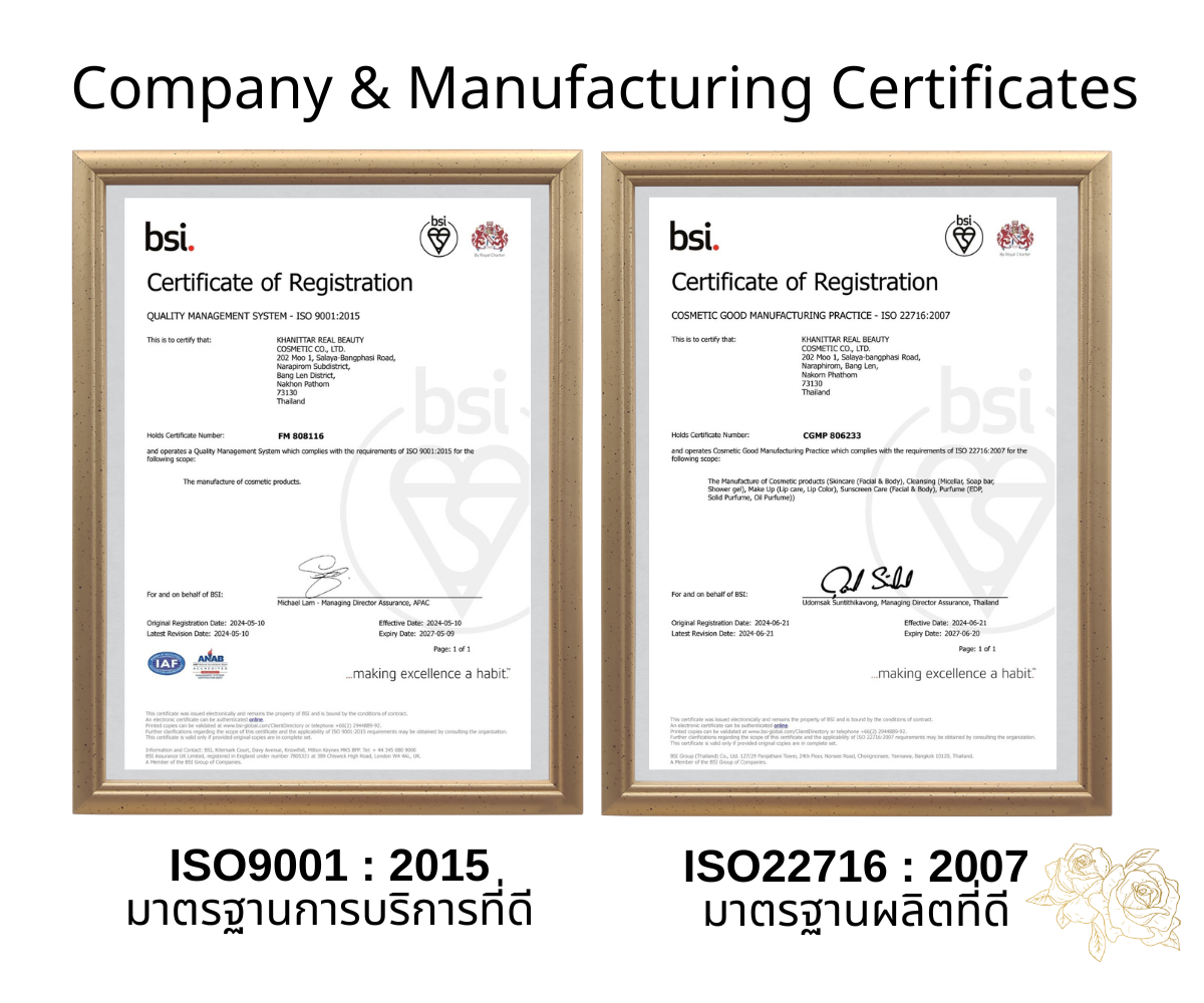 กระบวนการผลิตทั้งหมดอยู่ภายใต้มาตรฐานระดับสากลเพื่อให้มั่นใจในคุณภาพสูงสุด
